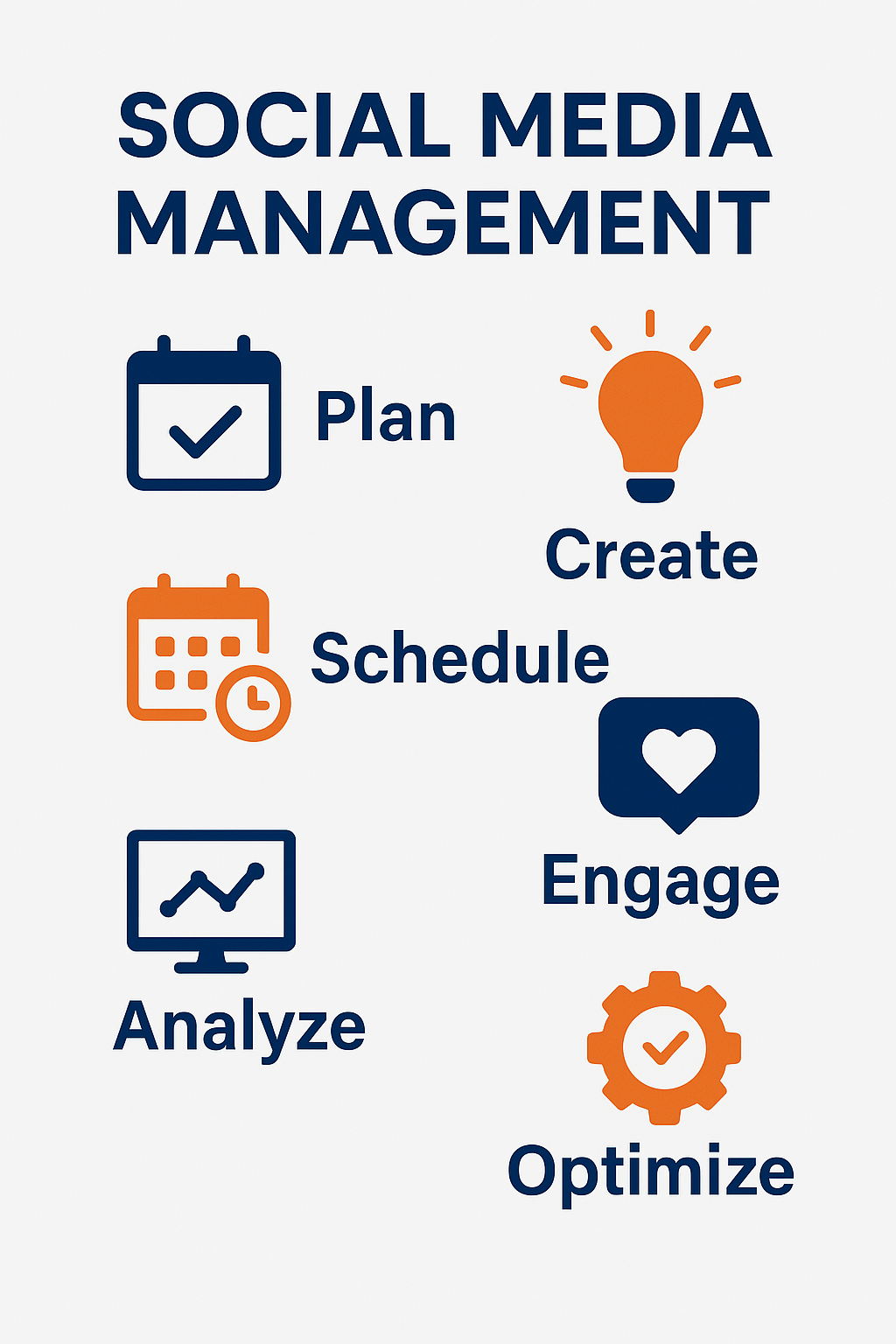 We plan, create, publish, and optimize across your social channels—pairing always-on scheduling, community care, and data-driven iteration—so your brand shows up consistently, grows the right audience, and turns attention into action. With a clear strategy and steady editorial cadence, we map what your audience cares about and build a purpose-led calendar. Every post has a job: spark conversation, drive qualified traffic, capture leads, or shape perception.
